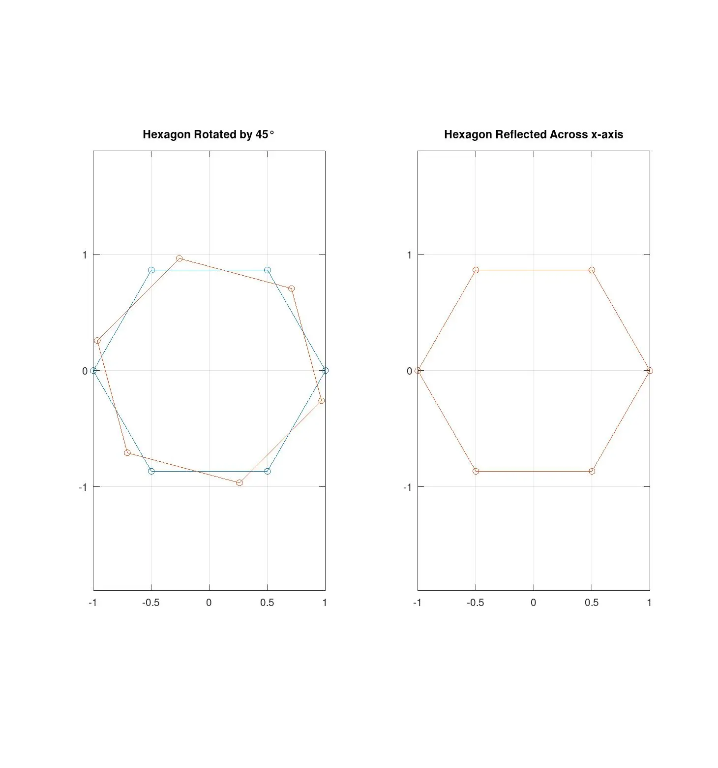 Given an initial vector , we utilize the rotation matrix to generate a hexagon. The rotation matrix for an angle is defined as: